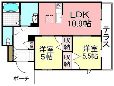 | アパート | 1LDK , 2LDK | 軽量鉄骨造 | 2階建 | 4戸 | 49.23 〜 63.69u | ||