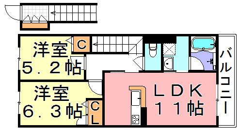 | アパート | 1LDK・2LDK | 軽量鉄骨造 | 2階建 | 2戸 | 43.92 〜 59.93u | ||