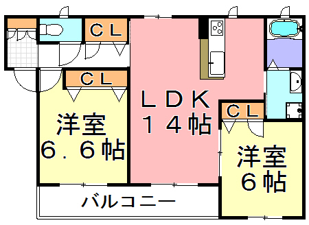 | アパート | 2LDK | 軽量鉄骨造 | 2階建 | --- | 約60.63 u | ||