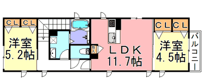 | アパート | 1LDK , 2LDK | 軽量鉄骨造 | 2階建 | 2戸 | 42.46 〜 59.54u | ||